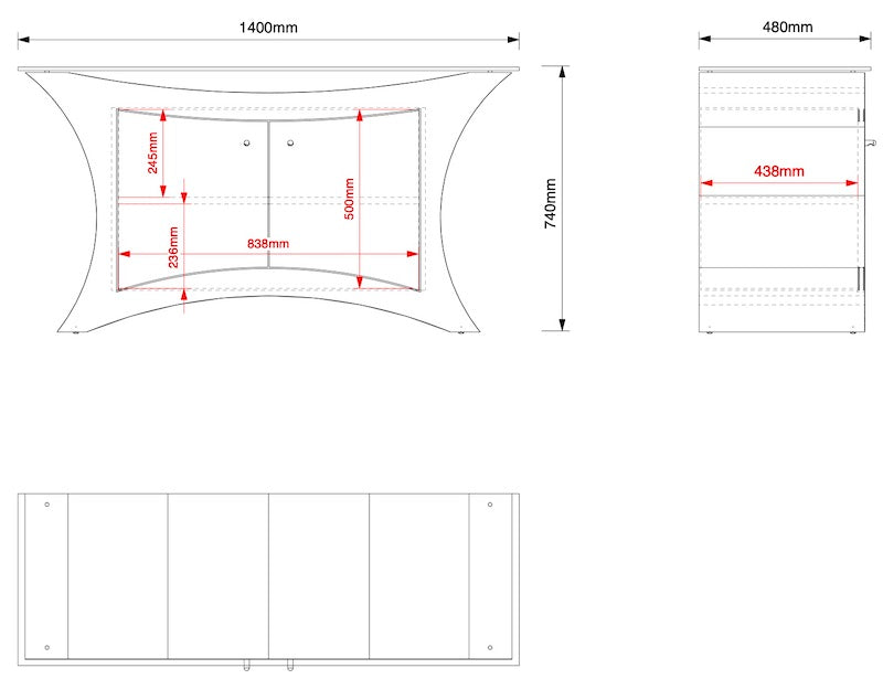 Nuestras tapas y estantes de vidrio templado están endurecidos y probados según los estándares de la industria del Reino Unido y Europa. El proceso de endurecimiento a veces crea un patrón de tensión que puede parecer ondulado en el vidrio cuando se lo observa desde ciertos ángulos, y no debe considerarse un defecto. En caso de que el vidrio se rompa accidentalmente, se hará añicos de manera relativamente segura en pequeños fragmentos.