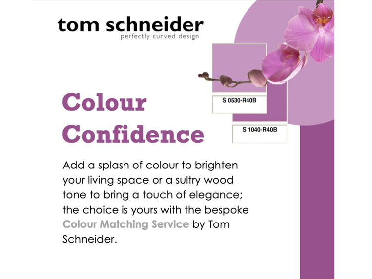 Podemos ayudarle a personalizar aún más su diseño elegido de Tom Schneider con nuestro servicio de combinación de colores, que ofrece una gran cantidad de posibilidades de diseño.