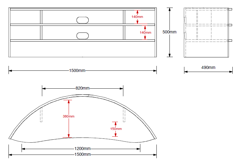 The most stunning piece of furniture I’ve ever owned. Flawless finish, pristine wood and beautiful curves that fit perfectly into a corner space. My 55” TV stands perfectly on top and I love that I have the option to upgrade to a 65” TV that would still fit perfectly. The shelves underneath the TV are generously wide and perfectly accommodate my PlayStation 5 and Nintendo Switch OLED. The shelves can easily accommodate a range of media devices and depending on width/depth, 2 devices can easily sit next to each other on each shelf. There’s room for smaller decorative objects on either side of the central shelf sections. My unit is the central piece of furniture in my lounge but it blends in perfectly to the corner thanks to the beautiful curved design. With the unit shelves raised off of the floor, it helps to make the corner area look more spacious as you can still see all of the floor space underneath. A truly wonderful piece of furniture from a great company who provided a wonderful service.