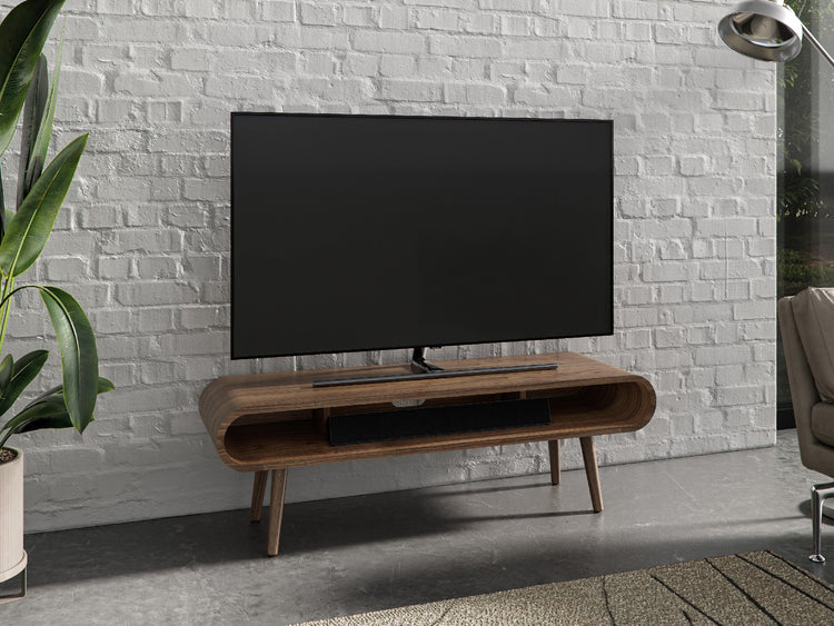 Este diseño maravillosamente sencillo con sus curvas clásicas resalta la belleza de su madera natural. El mueble multimedia con forma de bucle tiene un amplio espacio de almacenamiento para unidades multimedia o una barra de sonido. Con su gestión de cables, no solo es atractivo sino también una solución multimedia muy práctica. Dimensiones: 130 x 40 x 42 cm. Para televisores de hasta 55 pulgadas. Roble natural y Nogal natural en stock para entrega rápida. Roble natural y Nogal natural en stock para entrega rápida.