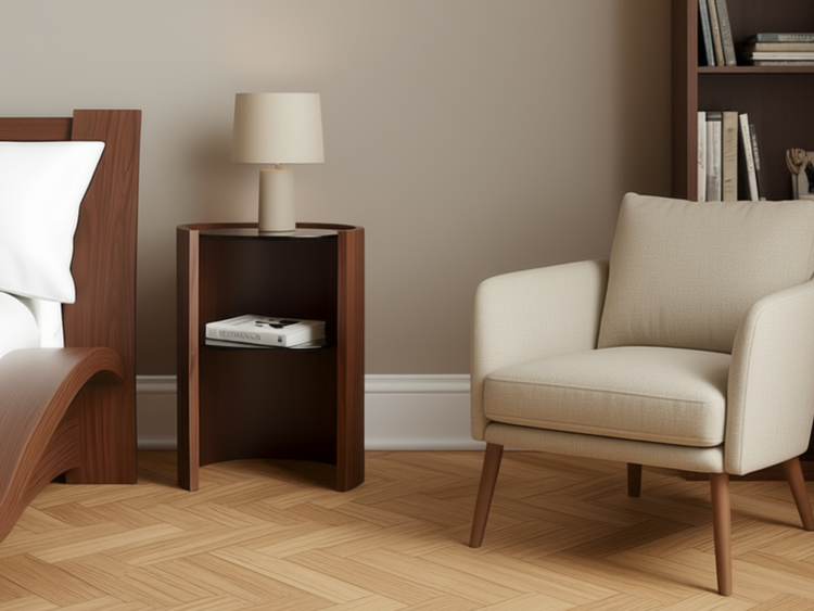 La mesita de noche Orbit es la combinación perfecta de decoración y funcionalidad. Un diseño suave y curvo con estantes de vidrio y espacio para cajones para los elementos esenciales junto a la cama: es la opción perfecta para un dormitorio elegante. Este diseño también está disponible con un cajón para almacenamiento adicional.