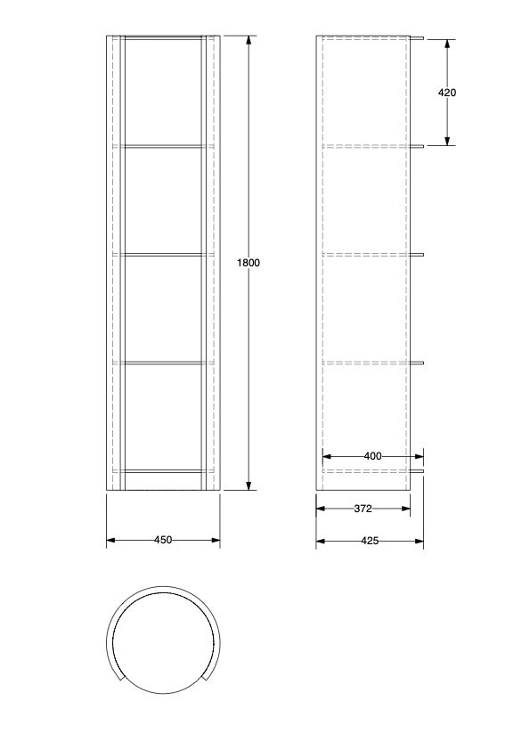 La forma cilíndrica abierta de las estanterías Saturn es una unidad de exhibición perfecta para adornos y artículos decorativos, con estantes y tapa de vidrio. El tamaño estrecho es ideal para decorar habitaciones más pequeñas sin ocupar el valioso espacio del piso. Dimensiones: 45 cm x 38 cm x 180 cm de alto. Roble natural y nogal natural en stock para entrega rápida.