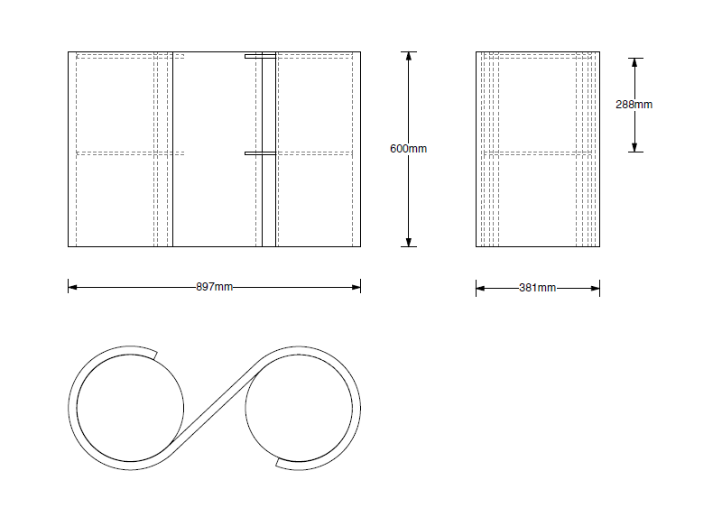 La mesa de lámpara Swirl Lovers tiene una forma en espiral que se refleja en cada lado para crear una mesa de lámpara única hecha a mano. Los estantes de vidrio empotrados ofrecen espacio para colocar sus lámparas y accesorios en un entorno perfectamente curvado. Dimensiones: 90 cm x 36 cm x 60 cm de alto.
