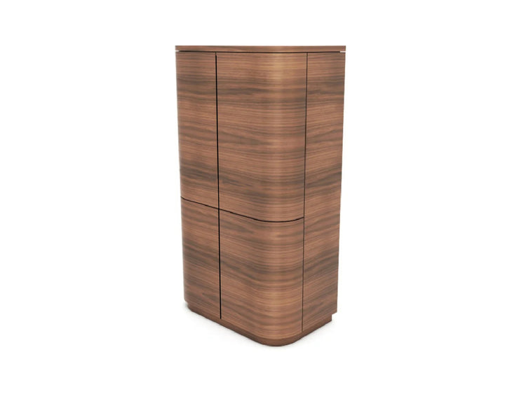 TS2125  Bespoke Drinks Cabinet, Walnut Natural, 80 x 45 x 145cm High. Pull-out drawer at the base. Integrated wine storage shelves.