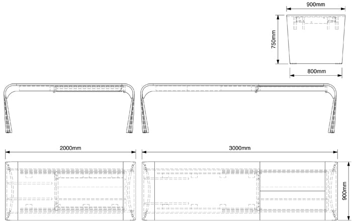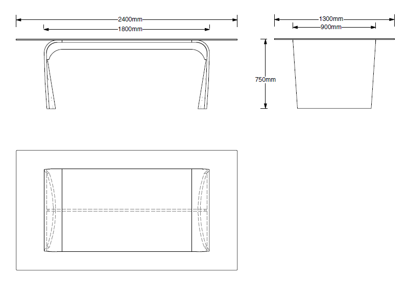 Curl Dining Table 3 Large (no glass) 220 x 90 x 74cm high