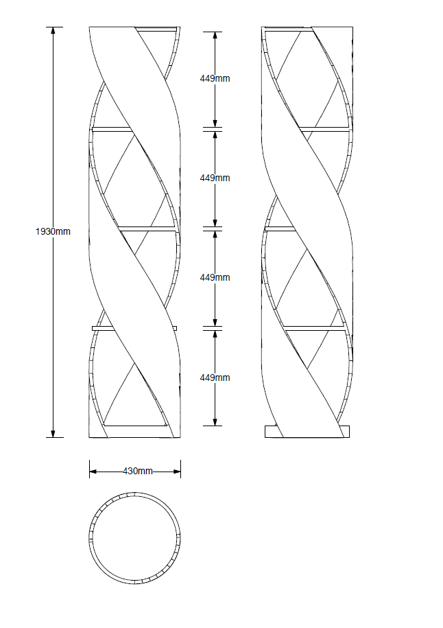 Les étagères DNA sont l'un des modèles les plus en vogue de nos collections. Inspirées du fil de la vie, leur présence spectaculaire en fait un véritable élément phare. Elles sont idéales pour exposer ces ornements spéciaux ou peuvent être appréciées comme une belle sculpture sans décoration supplémentaire. Disponibles avec des étagères en bois ou avec des étagères en verre encastrées. Dimensions : 43 cm x 43 cm x 193 cm de haut.