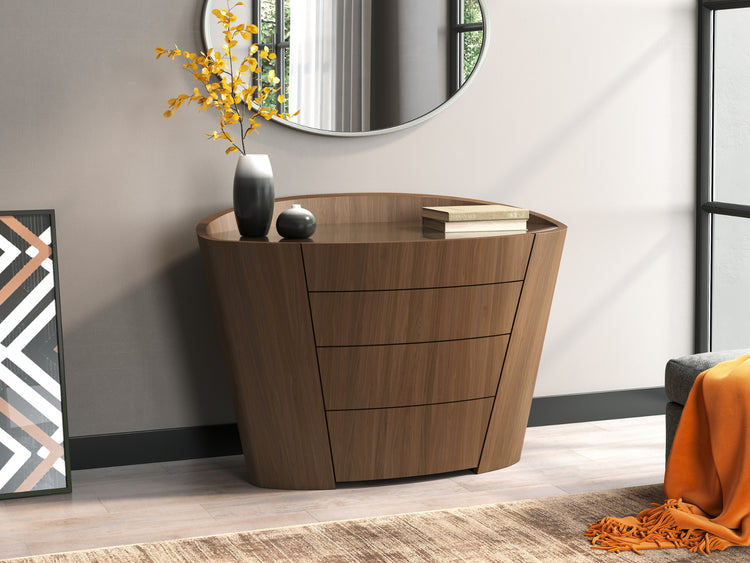 Un meuble remarquable qui crée instantanément un point focal dans n'importe quelle chambre. La forme elliptique est particulièrement unique car elle se rétrécit à 360 degrés, donnant une véritable impression de mouvement. Conçue avec 4 tiroirs pratiques et un plateau en verre, la commode Pebble transforme une solution de rangement en œuvre d'art. Dimensions : 116 cm x 64 cm x 84 cm.