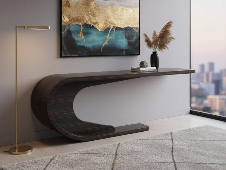 With a gravity-defying form that tapers to a delicate anchor point, the Crest Console Table captures the essence of a cresting wave. This console table serves as a striking and unique console solution for hallways or living spaces.