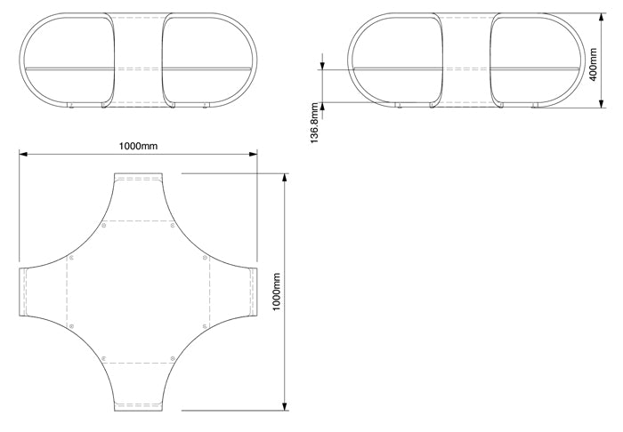 The Cornerless Quad Coffee Table is defined by its geometric balanced form. The shape folds in on itself exposing four phantom corners which allows access to the central glass storage area. This coffee table is a stunning centrepiece and is sure to be a talking point for your guests. Dimensions: 100cm x 100cm x 40cm high.