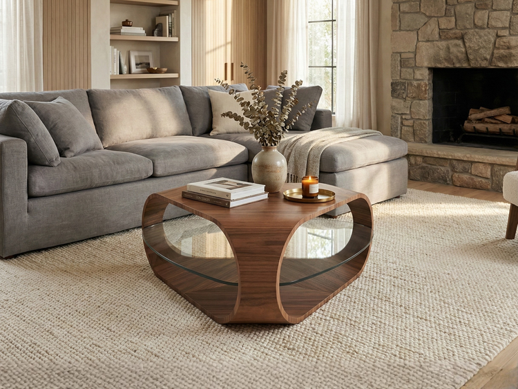 A testament to Tom's unique design vision, the Cornerless Tri Coffee Table boasts a geometrically balanced, self-contained form. This coffee tables innovative shape, with three accessible sides, reveals a central glass storage compartment, creating a stunning focal point for your living space. Dimension: 110cm x 95cm x 40cm high.