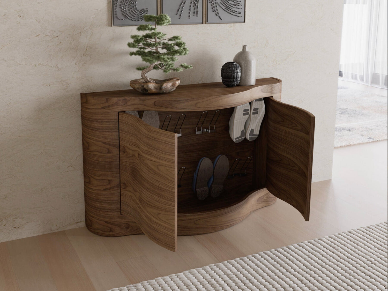 Bring order and elegance to your entryway with the Elle shoe tidy. This stylish storage solution keeps your hallway clear and organised, ensuring your home remains clutter-free and you can always find the shoes you need. Oak natural and Walnut natural held in stock for fast delivery. Dimensions 90cm x 33cm x 74cm high.
