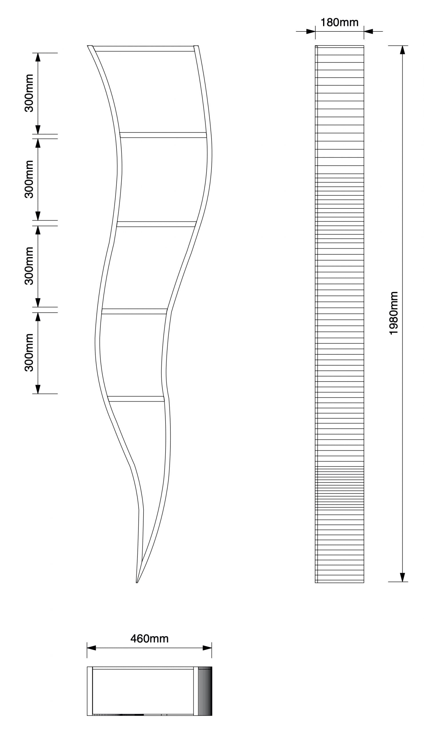 Inspired by the fluid motion of a flickering flame, these shelves offer a dynamic storage and display solution. Featuring four tiers, they can be customized with eight shelves for media storage. Adaptable for freestanding or wall-mounted use, and available in mirrored pairs for symmetrical arrangements, these shelves bring a modern, sculptural element to any space. Dimensions: 46cm x 18cm 198cm high.