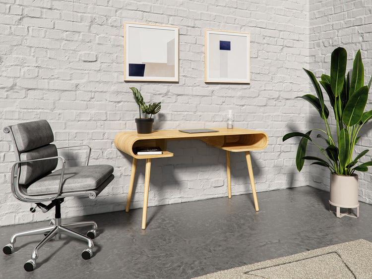 The Loopy Double Desk is a desk that masterfully blends the organic beauty of natural wood with the intelligent design of double-sided storage, creating a workspace that is both aesthetically pleasing and exceptionally functional. This desk's wonderfully simple form allows the rich textures and grains of the wood to take center stage, while providing ample storage for a productive home office desk. It also serves beautifully as a dressing table. Dimensions: 130cm x 50cm x 72cm high.