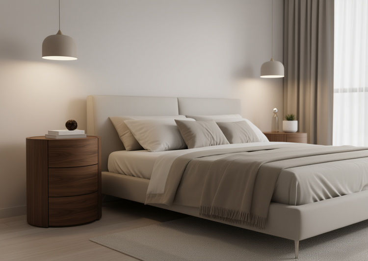The Orbit Bedside Table with Drawer harmonizes decorative elegance with essential bedside functionality. This bedside table's softly contoured design, featuring a luminous glass shelf and discreet drawer, creates a chic and organized haven for your night time essentials, perfectly complementing a stylish bedroom.