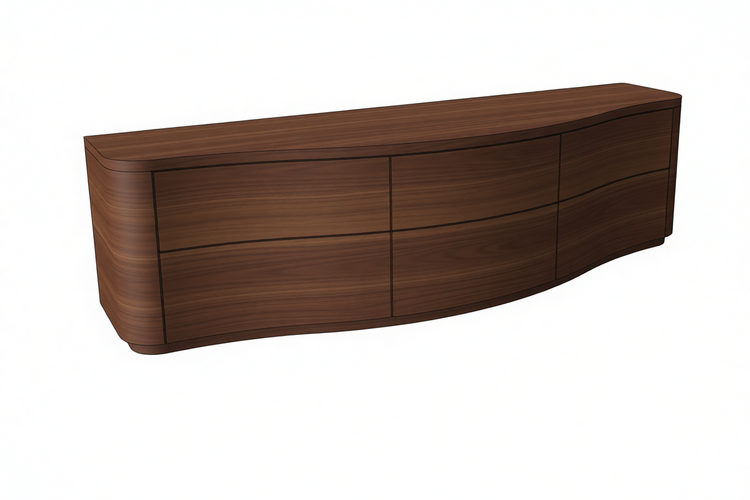 The Serpent Media Unit's fluid, uninterrupted design conceals comprehensive cable management and hidden cupboards that gracefully curve around its sides. This media unit is a testament to the perfect fusion of aesthetic appeal and functional design.